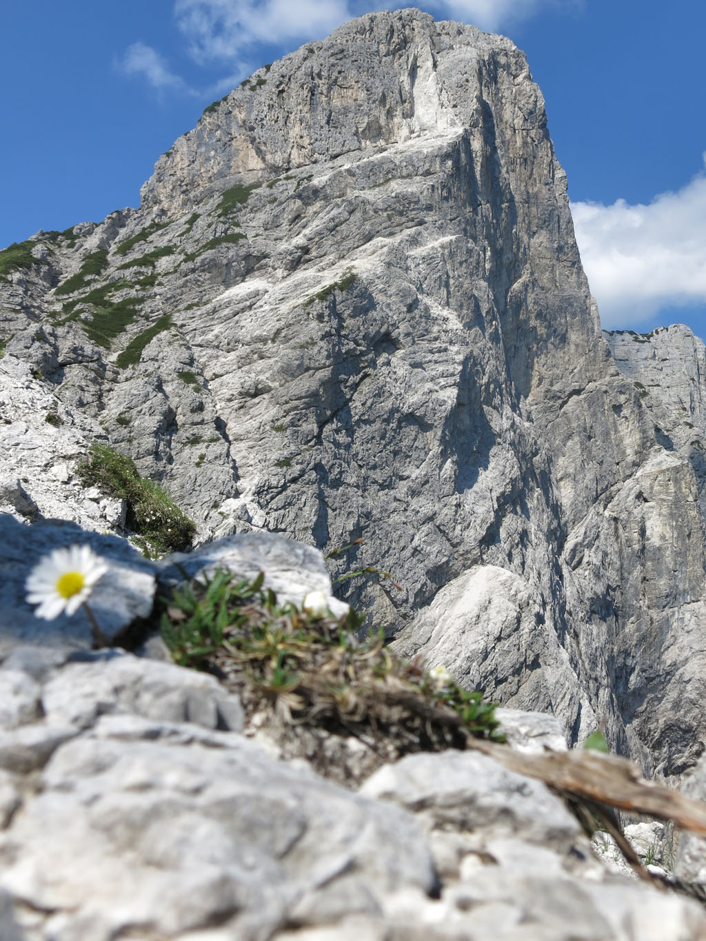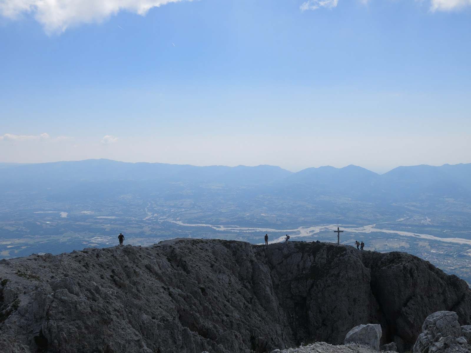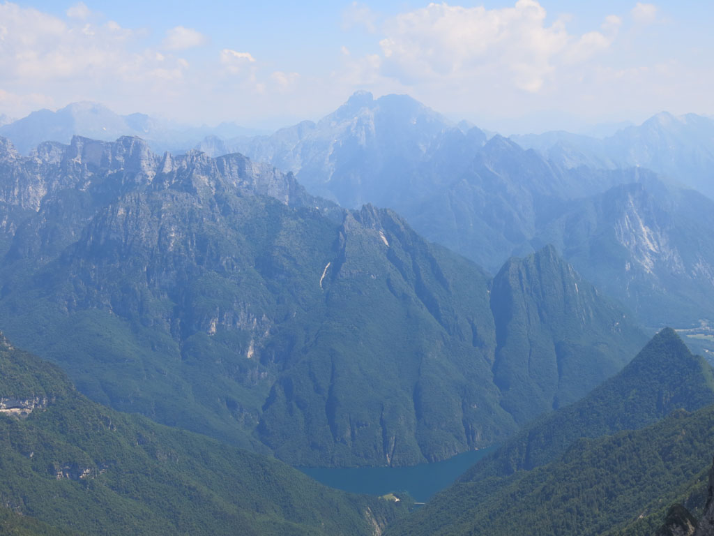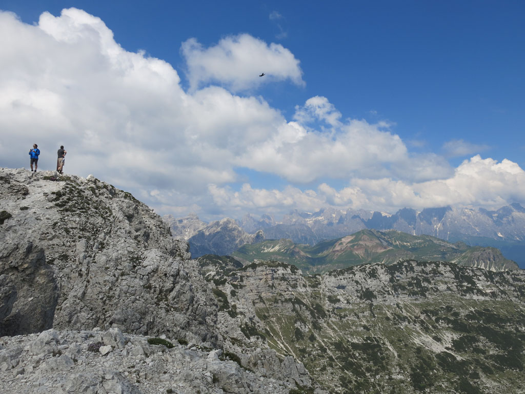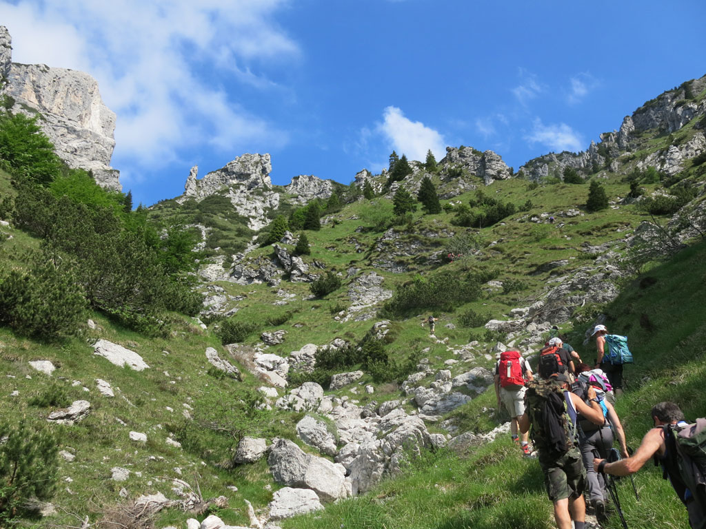 Per il ritorno vi sono due possibilità : la prima una volta raggiunto l'intaglio prima della cengia si scende ripidamente verso flla Intrigos (vista della possente parete Est), la seconda ripassare per la cengia e scendere al bivacco Palia e da qui per sentiero comodo si torna all'auto.
