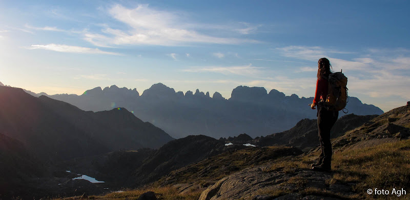 Alba sulle Dolomiti di Brenta salendo alla Bocchetta del Lago