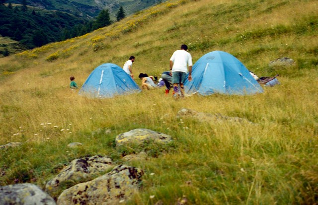 Oggi vi mostro alcune foto di un bel giro in tenda con partenza da Cenon (val Campelle), salita per val Montalon e primo pernottamento sotto la Pala del Becco. Per questa giornata c'era anche l'amico Italo con moglie e bimbo di TRE anni! Hanno pernottato e sono scesi per val Montalon. Il giorno seguente da forcella Montalon a forcella Valsorda con secondo pernottamento ai laghi delle Buse basse, dove abbiamo beccato uno spaventoso temporale notturno, tenda ottima. Terzo giorno passo Cion, strada del passo Cinque croci e arrivo al ponte Conseria. 12/13/14 agosto 1994, con me la figlia decenne e il nipote quindicenne. Bei ricordi!