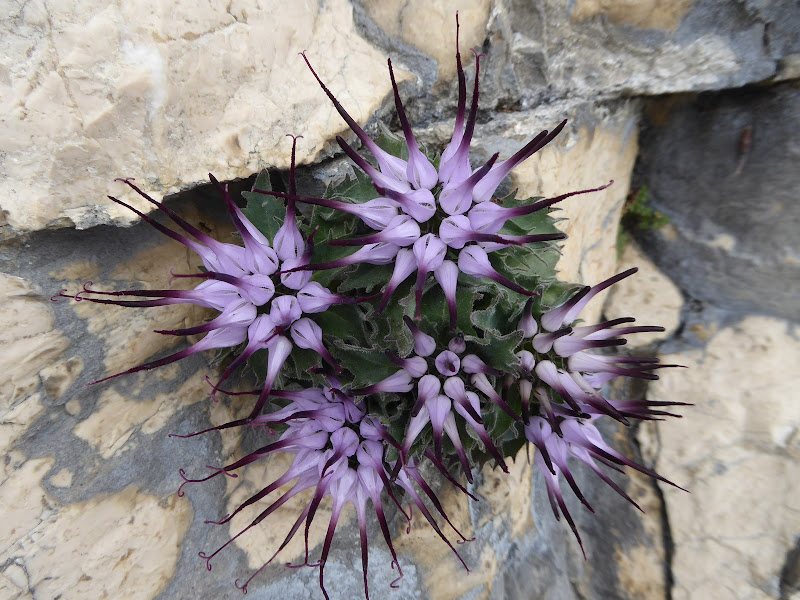 Stamattina sono andata a colpo sicuro, sull'altopiano di Asiago sapendo che avrei visto il raponzolo di roccia nel momento giusto della fioritura. Li avevo notati ormai sfioriti ad ottobre dell'anno scorso e poi con i primi boccioletti oltre un mese fa.